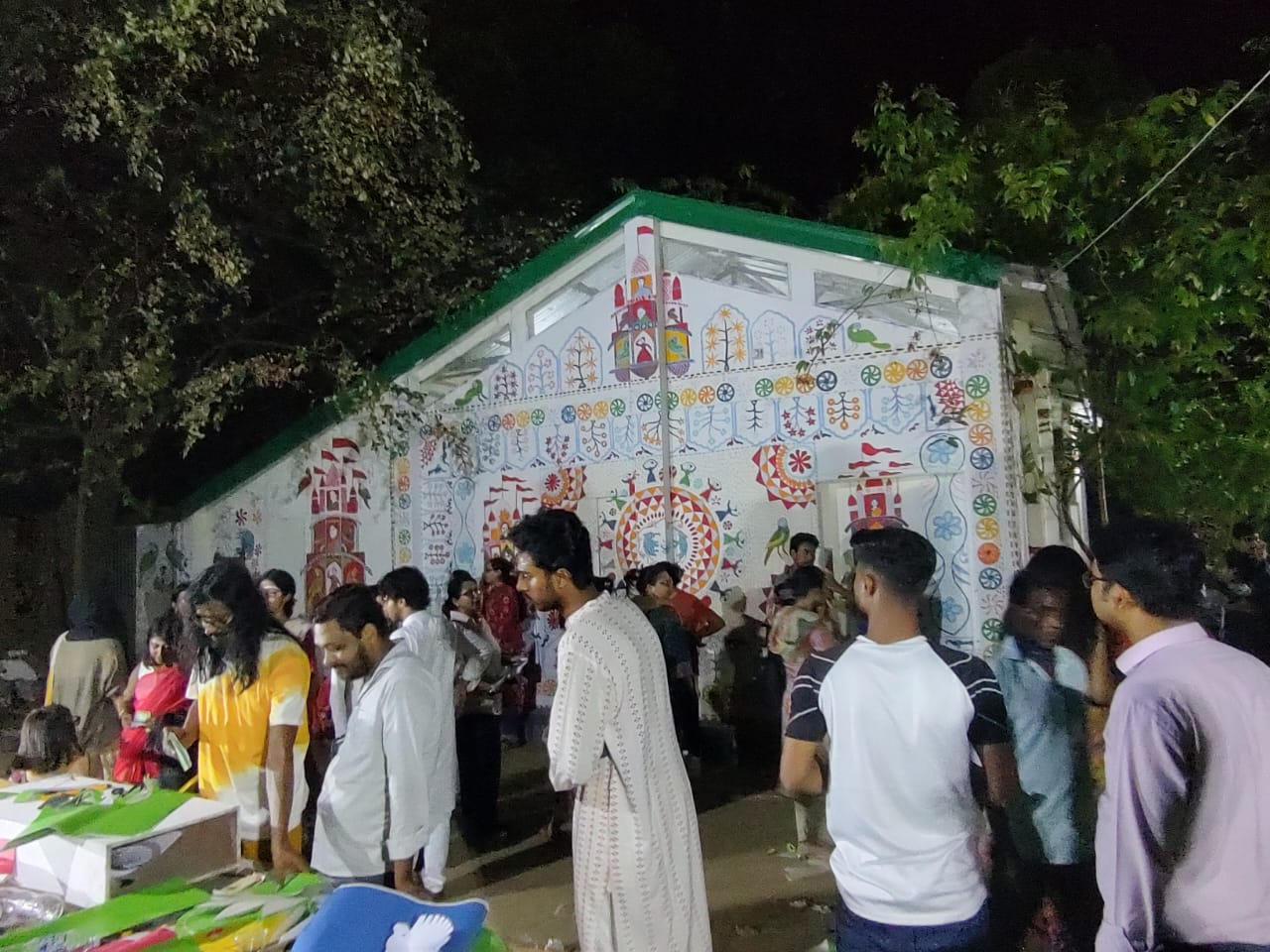 এপার বাংলায় নববর্ষ পালনে আরও একদিন সময় হাতে থাকলেও, রাত পোহালেই পহেলা বৈশাখ বাংলাদেশে। সে কারণে ঢাকার চারুকলা কেন্দ্রে চৈত্র সংক্রান্তির রাত জমজমাট। সেখানে ভিড় জমিয়েছেন ছাত্র-ছাত্রী এবং অভিভাবকরা।