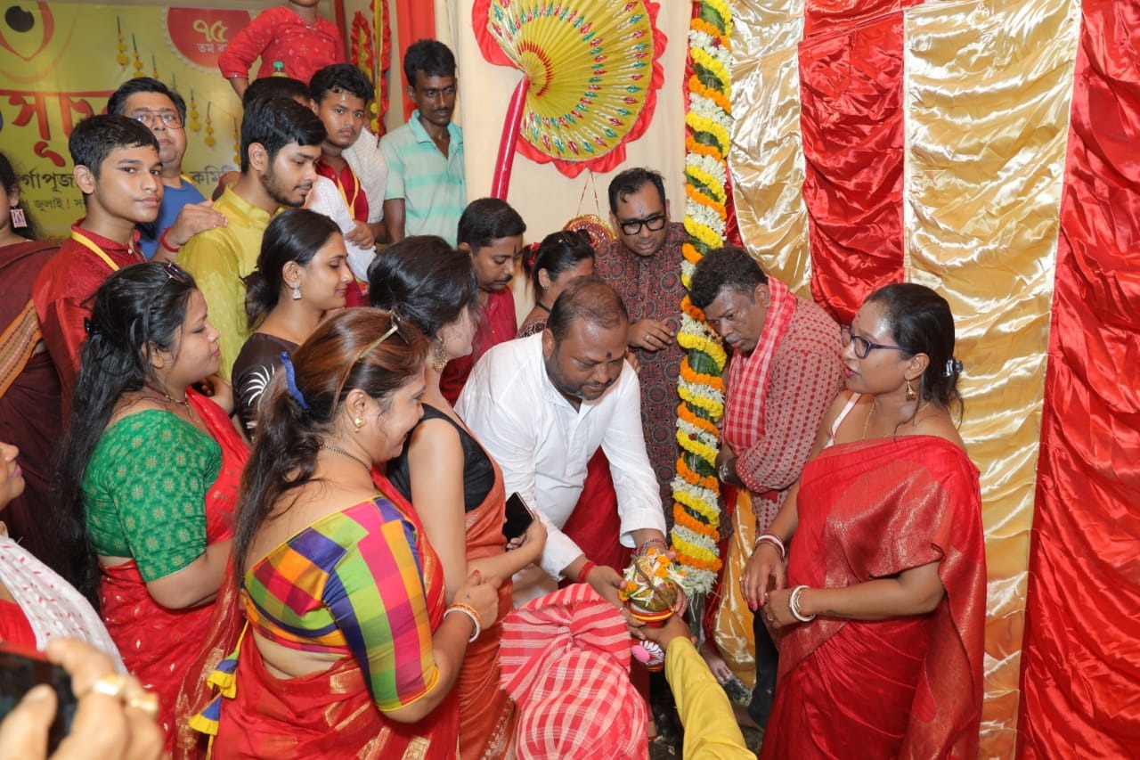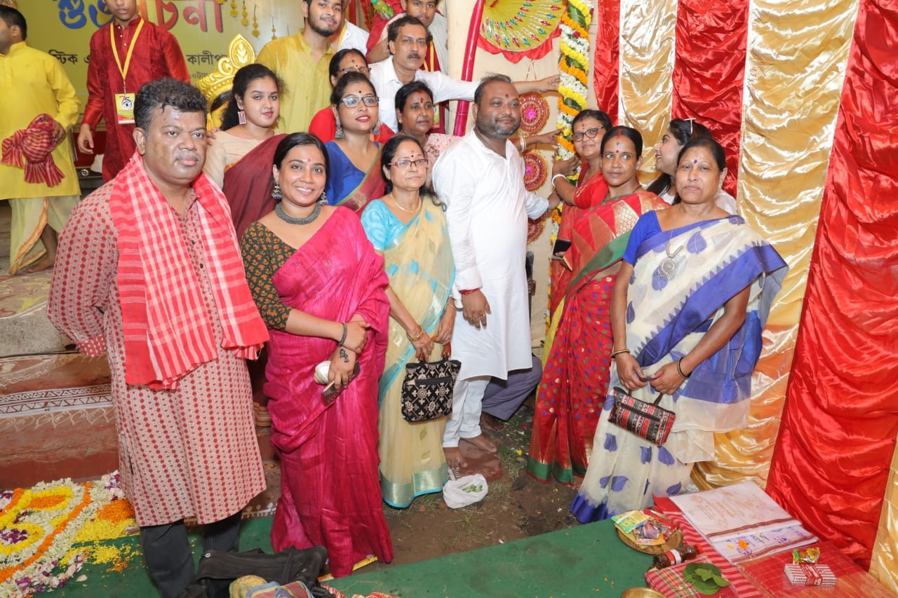 খুঁটি পুজোর মধ্যে দিয়ে দক্ষিণেশ্বরের ডোমেস্টিক এরিয়া কমিটির দুর্গাপুজোর ঢাকে পড়ল কাঠি