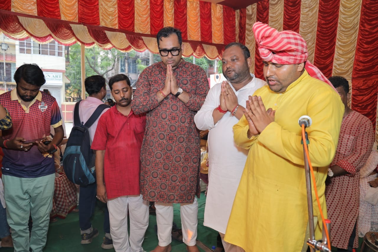 খুঁটি পুজোর মধ্যে দিয়ে দক্ষিণেশ্বরের ডোমেস্টিক এরিয়া কমিটির দুর্গাপুজোর ঢাকে পড়ল কাঠি
