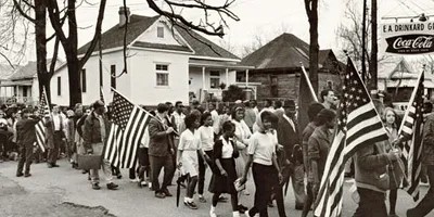 ১৯৬৫ মার্টিন লুথার কিং জুনিয়রের নেতৃত্বে আমেরিকার সেলমা থেকে মন্টোগোমেরি পর্যন্ত নাগরিক অধিকারের দাবিতে প্রতিবাদী মিছিল যাত্রা শুরু করে। মার্টিন লুথার কিং জুনিয়র তাঁর খ্রিস্টীয় ধর্মবিশ্বাস ও মহাত্মা গান্ধীর অহিংস আন্দোলন দ্বারা অনুপ্রাণিত হয়ে নাগরিক ও মানবাধিকার আন্দোলন এগিয়ে নিয়ে গিয়েছিলেন।