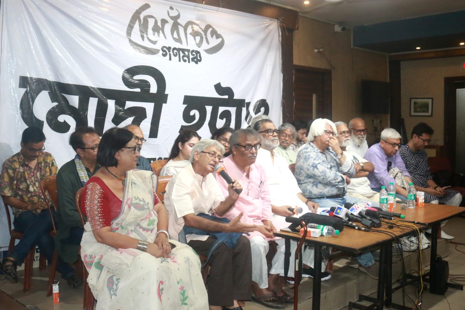 আর এই উস্কানি চরম বিপদ ডেকে আনছে দেশের সামাজিক স্তরে। দেশে ভয়ংকর পরিস্থিতির জন্ম দিতে পারে বলে মনে করছে দেশ বাঁচাও গণমঞ্চ। এদিন এই বক্তব্যের সপক্ষে মত প্রকাশ করেন পূর্ণেন্দু বোস, সুদেষ্ণা রায়, প্রতুল মুখোপাধ্যায়, হরনাথ চক্রবর্তী-সহ বিশিষ্টজনেরা।
