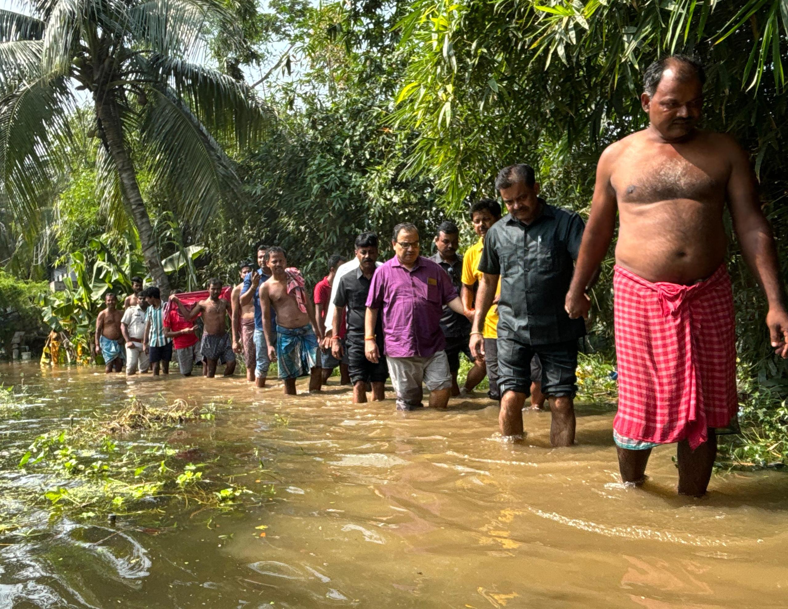 বন্যার জলে বিধ্বস্ত বাংলার একাধিক জেলার মানুষ। রাজ্যের বিভিন্ন এলাকায় প্রশাসনিক আধিকারিক থেকে সাংসদ বিধায়কদের সাধারণ মানুষের নিরাপত্তা, ত্রাণ ও বাসস্থানের দায়িত্ব নিয়ে ‘মাঠে নামা’র নির্দেশ দিয়েছেন মুখ্যমন্ত্রী মমতা বন্দ্যোপাধ্যায় (Mamata Banerjee)। কংসাবতী নদীর বাঁধ ভেঙে ইতিমধ্যে কোমর সমান জল পূর্ব মেদিনীপুর (East Medinipur) জেলার পাঁশকুড়াতেও (Panskura)। সেই সব এলাকা এবার পরিদর্শনে প্রাক্তন তৃণমূল সাংসদ কুণাল ঘোষ ও তৃণমূল নেতা দেবাংশু ভট্টাচার্য।